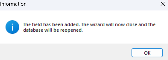 Now click the menu button again and select Modify Database > Modify Field and select the field you just added in the properties table change the default line to 'Identity(Id,1000,1)' as in the below example click on another line to refresh the window and click 'Save'.